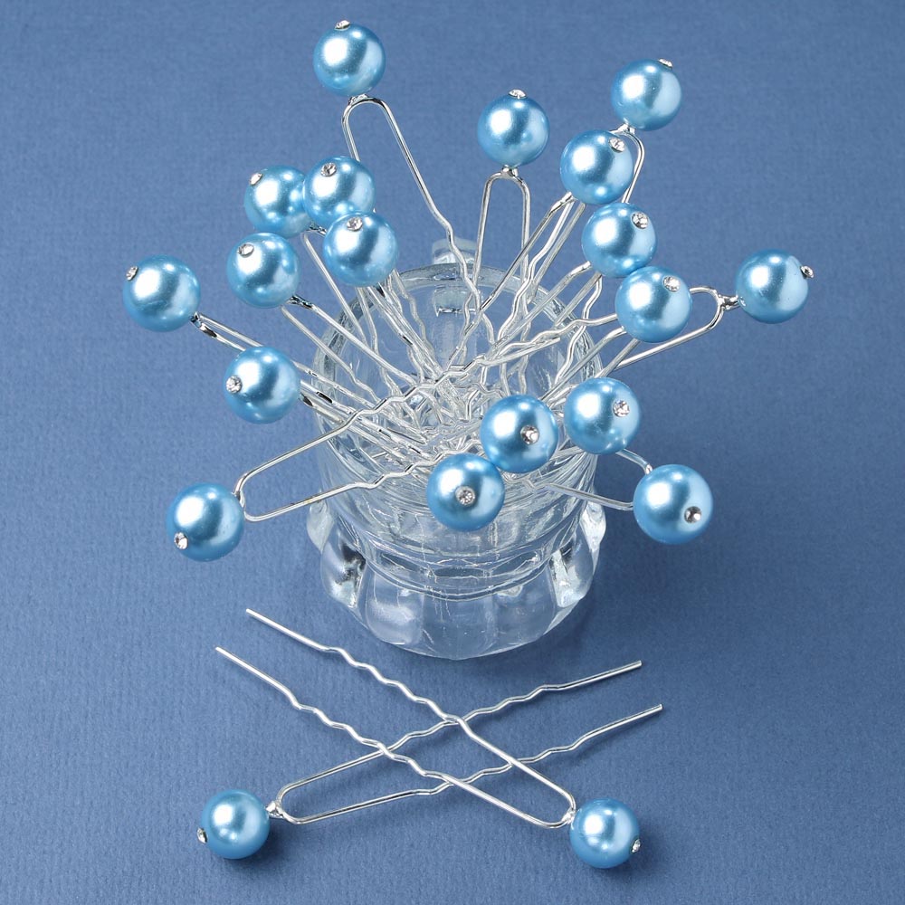 Шпильки для волос жумчуг со стразинкой 10 мм 20 шт голубые 11/2