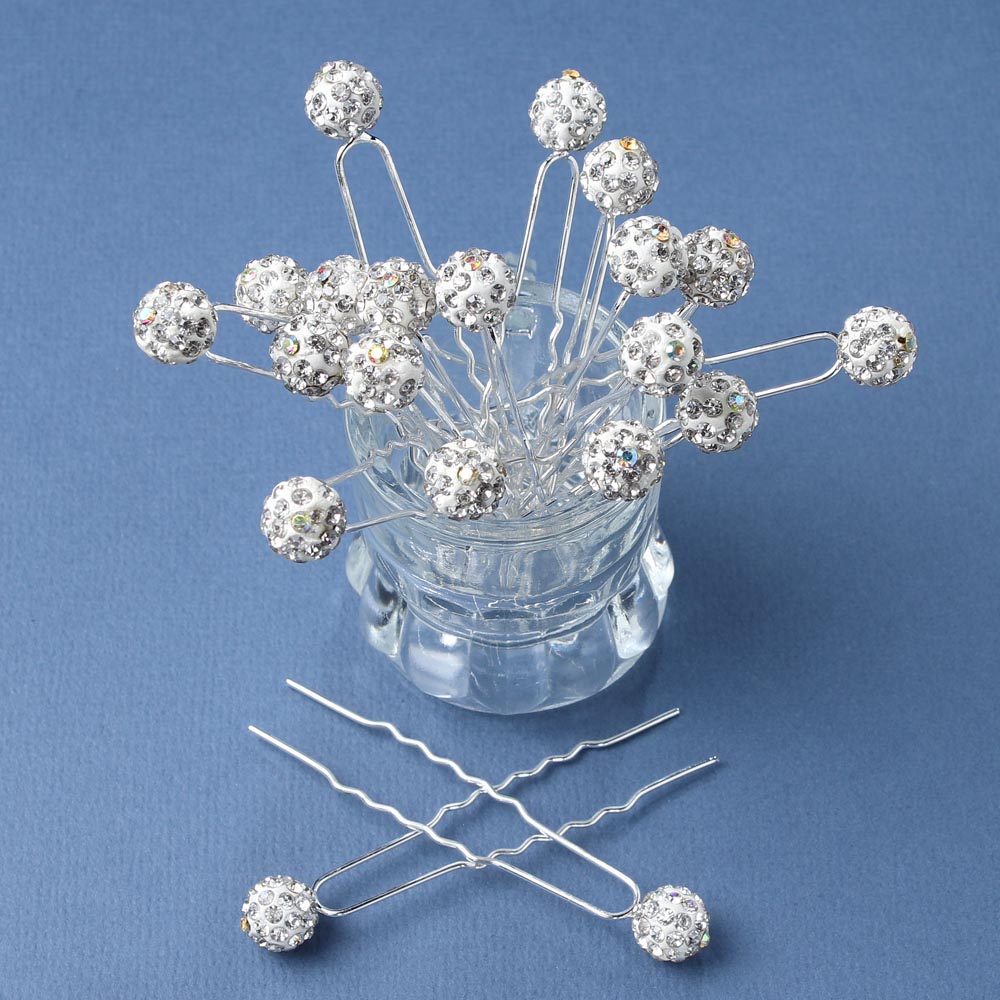 Шпильки для волос с бусиной шамбала 20 шт белые 42/8