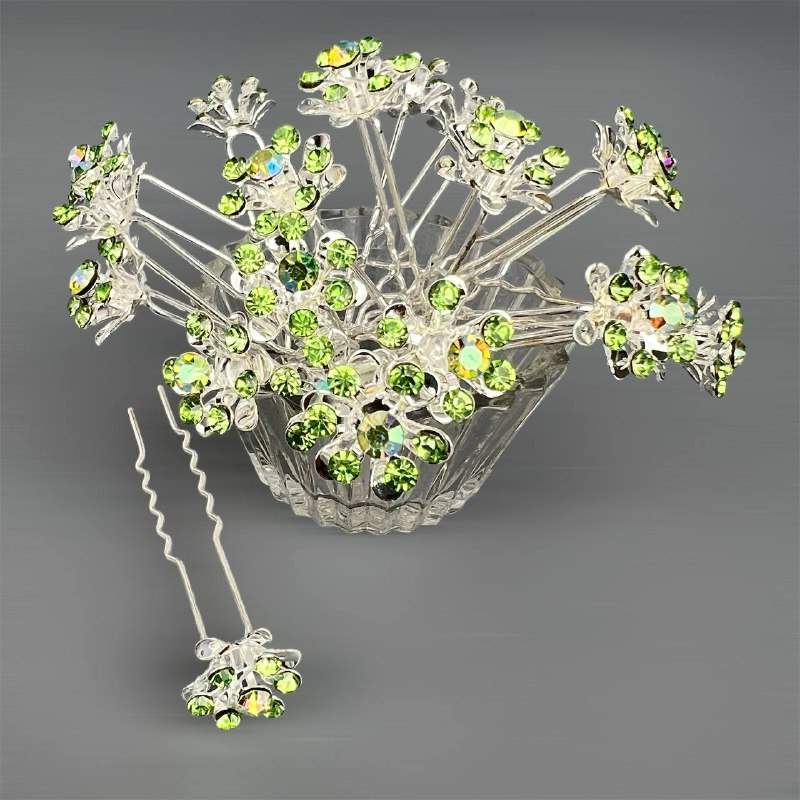 Шпильки для волос цветок из страз 15 мм 20 шт зеленые 26/5