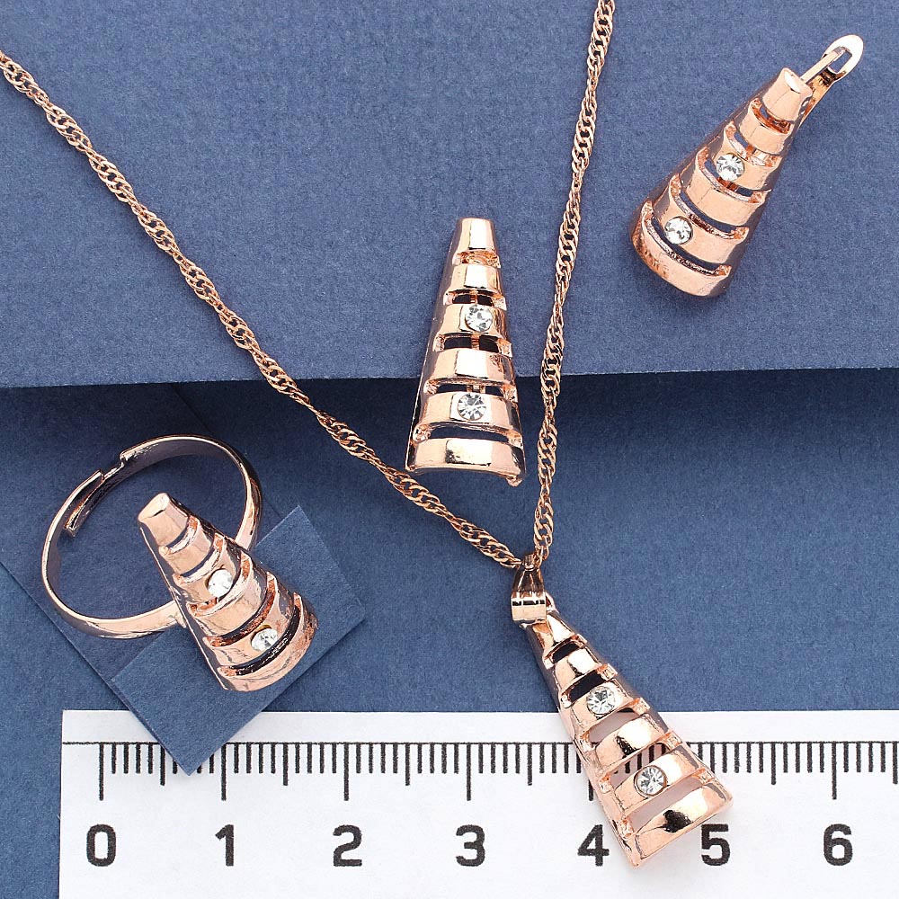 Набор серьги кулон на цепочке кольцо под золото со стразами