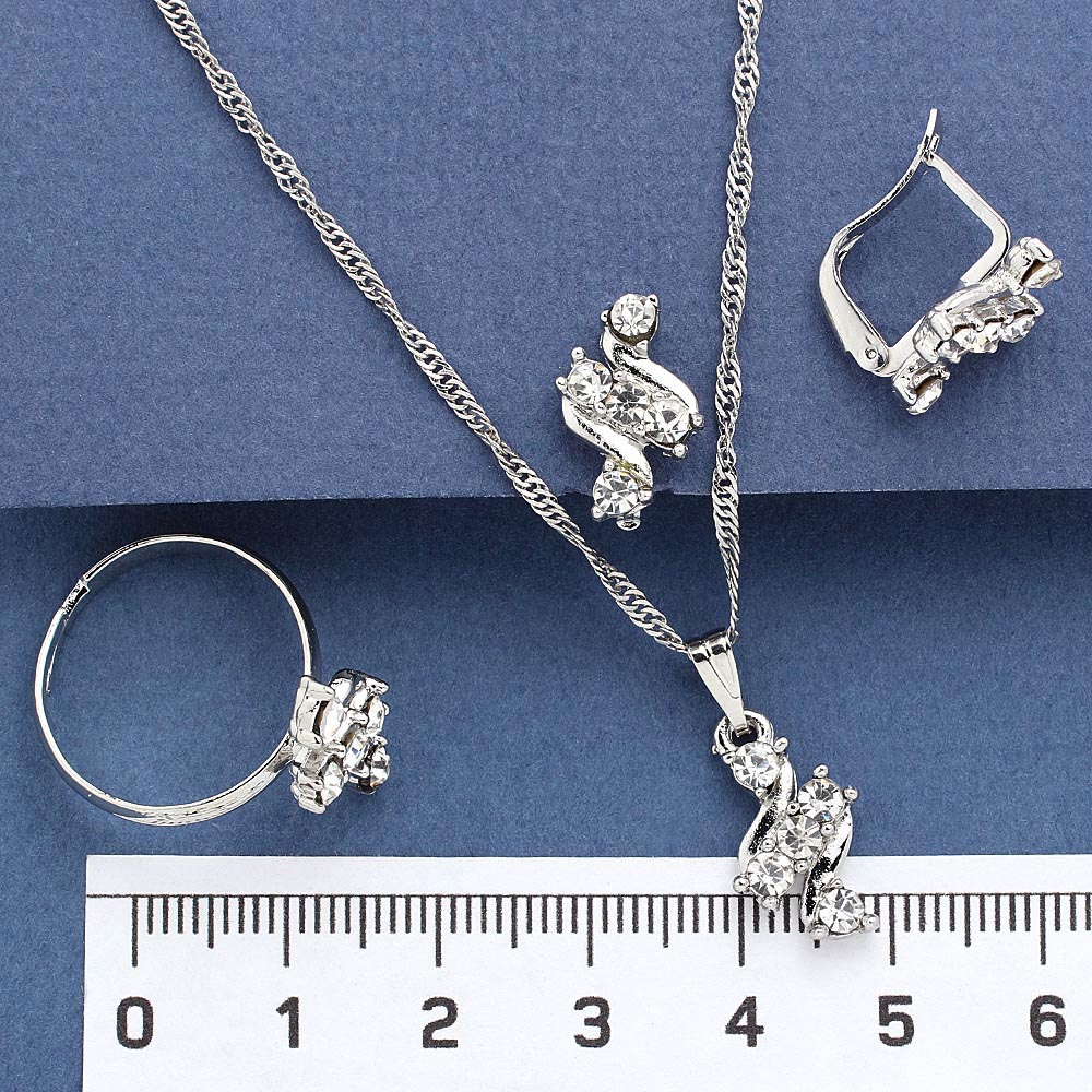 Набор серьги кулон на цепочке кольцо под серебро со стразами