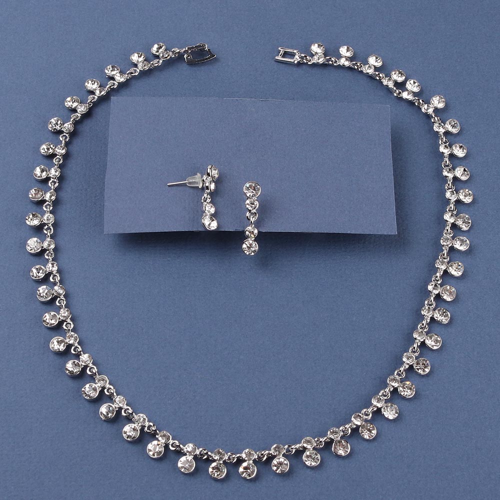 Колье и серьги со стразами серебро