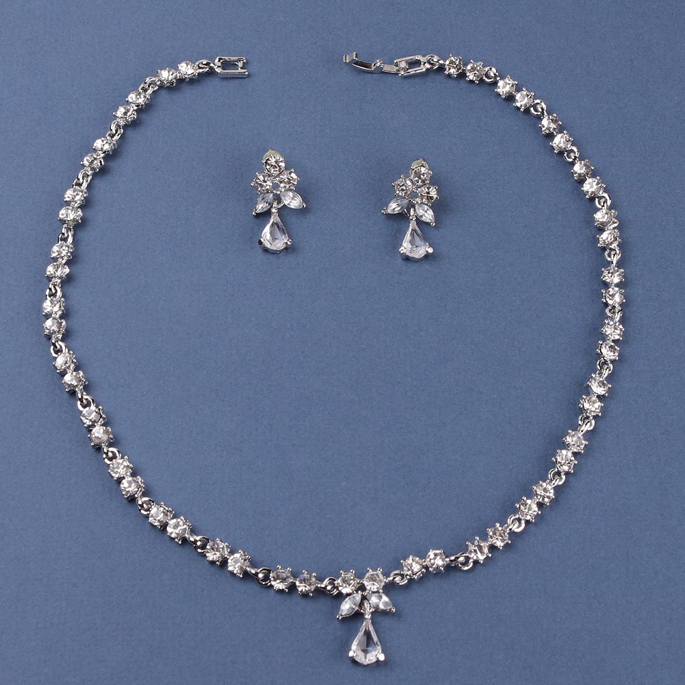 Колье и серьги со стразами серебро