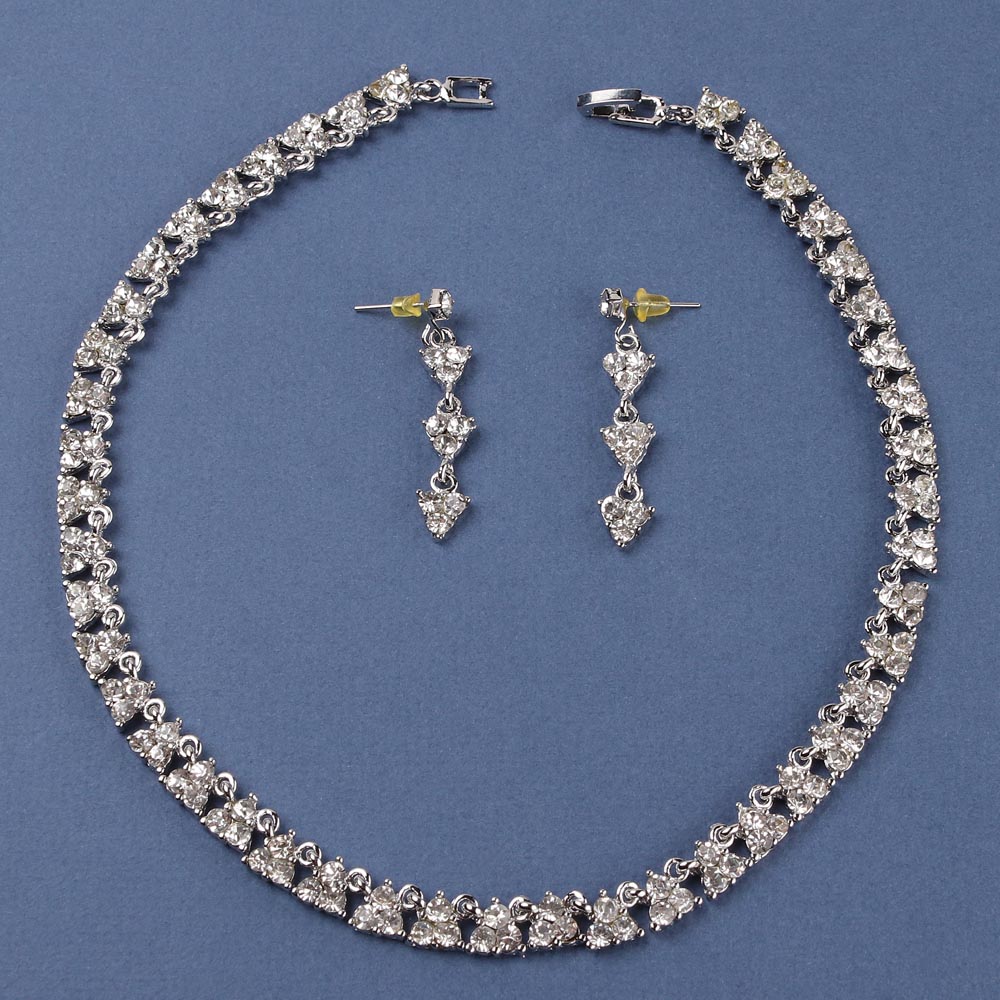 Колье и серьги со стразами серебро