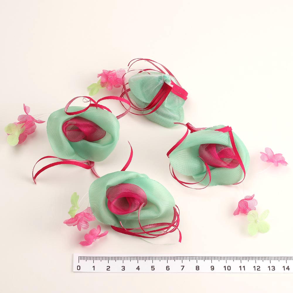 Основа заготовка из органзы кристаллиновый цветок уп 100 шт белый с салатовым