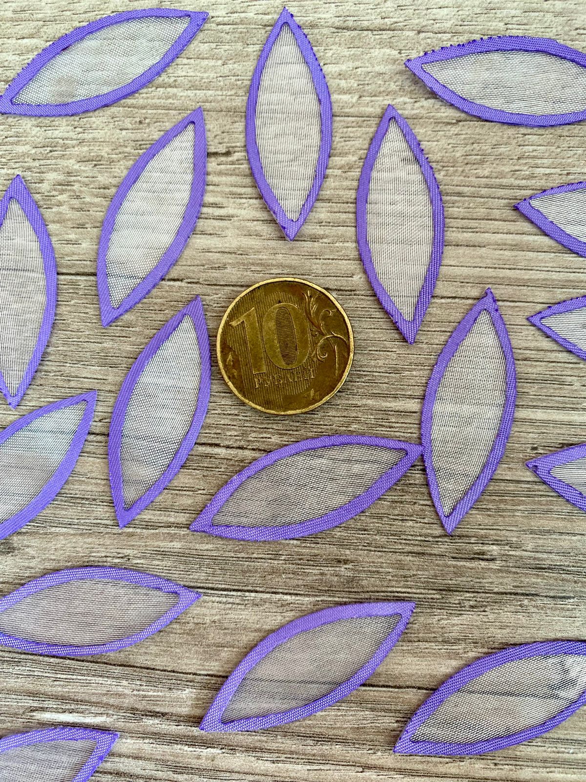 Основа заготовка из органзы листок белый с сиреневой окантовкой уп 1000 шт