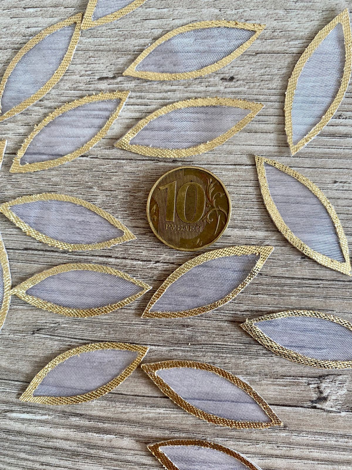 Основа заготовка из органзы листок белый с золотой окантовкой уп 1000 шт