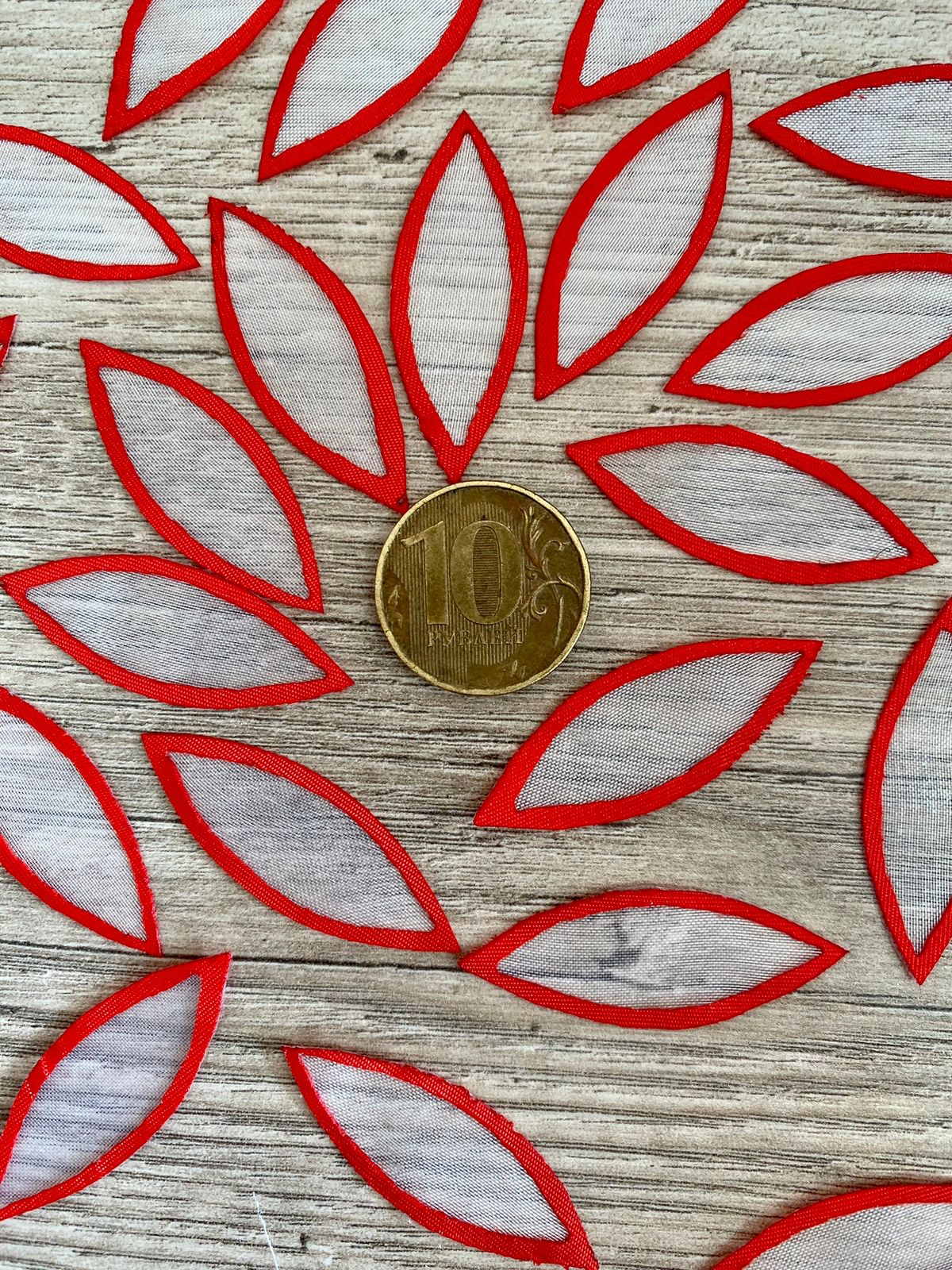 Основа заготовка из органзы листок белый с красной окантовкой уп 1000 шт