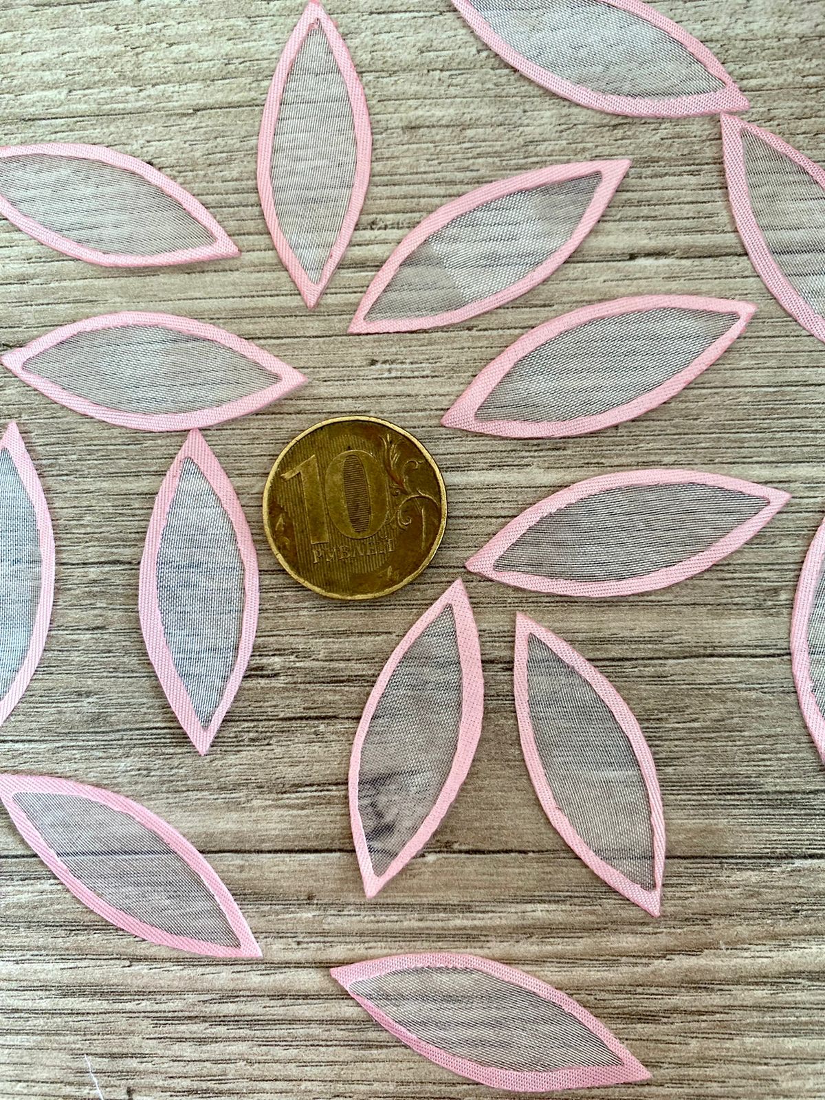 Основа заготовка из органзы листок белый с розовой окантовкой уп 1000 шт
