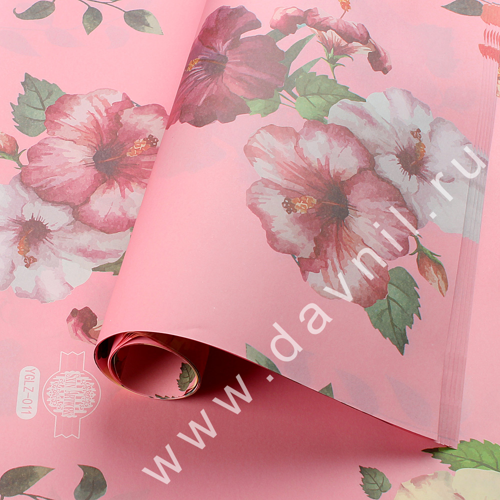 Бумага крафт "Крупный цветок" 58*58 см 20 шт. розовая