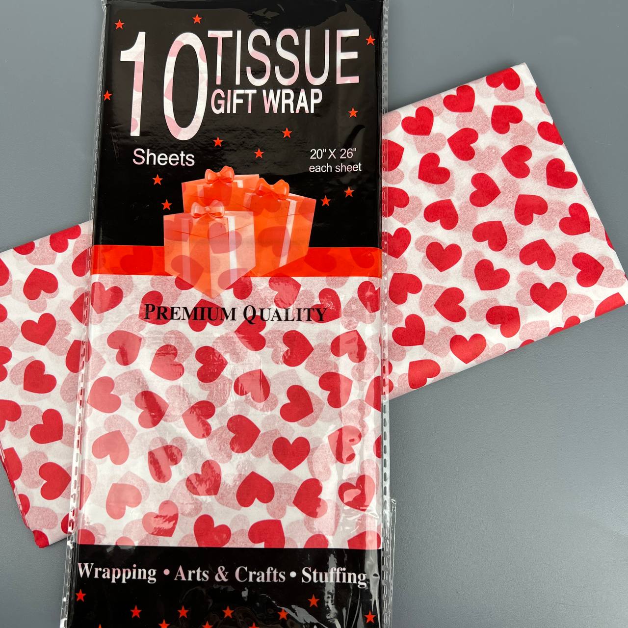 Бумага тишью 50*66 см 10 шт белая с большими сердечками 111/55
