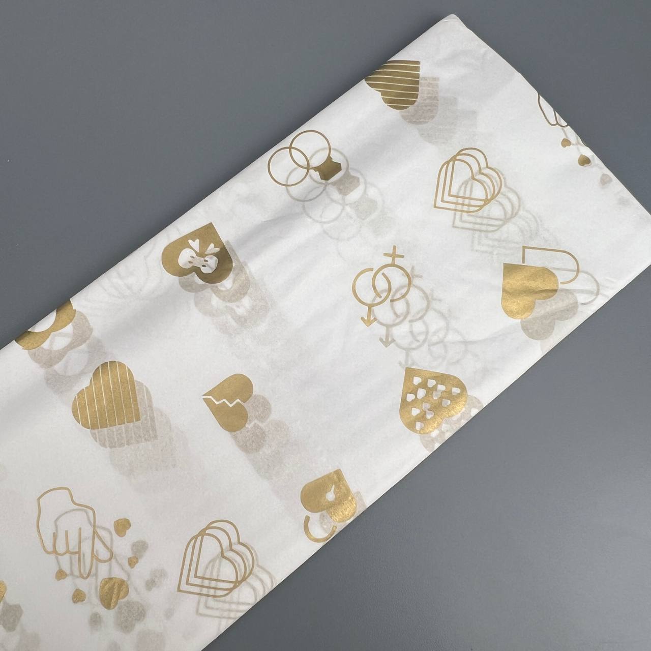 Бумага тишью 50*66 см 10 шт золотые свадебные сердечки 4