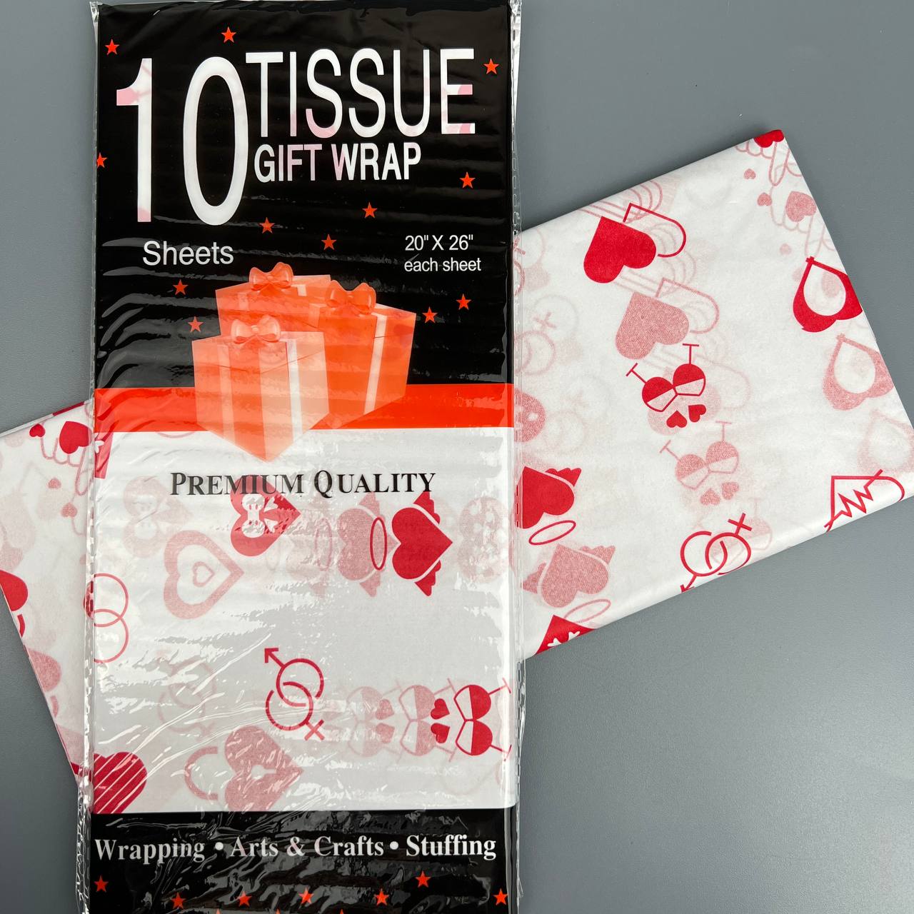 Бумага тишью 50*66 см 10 шт красные свадебные сердечки 1