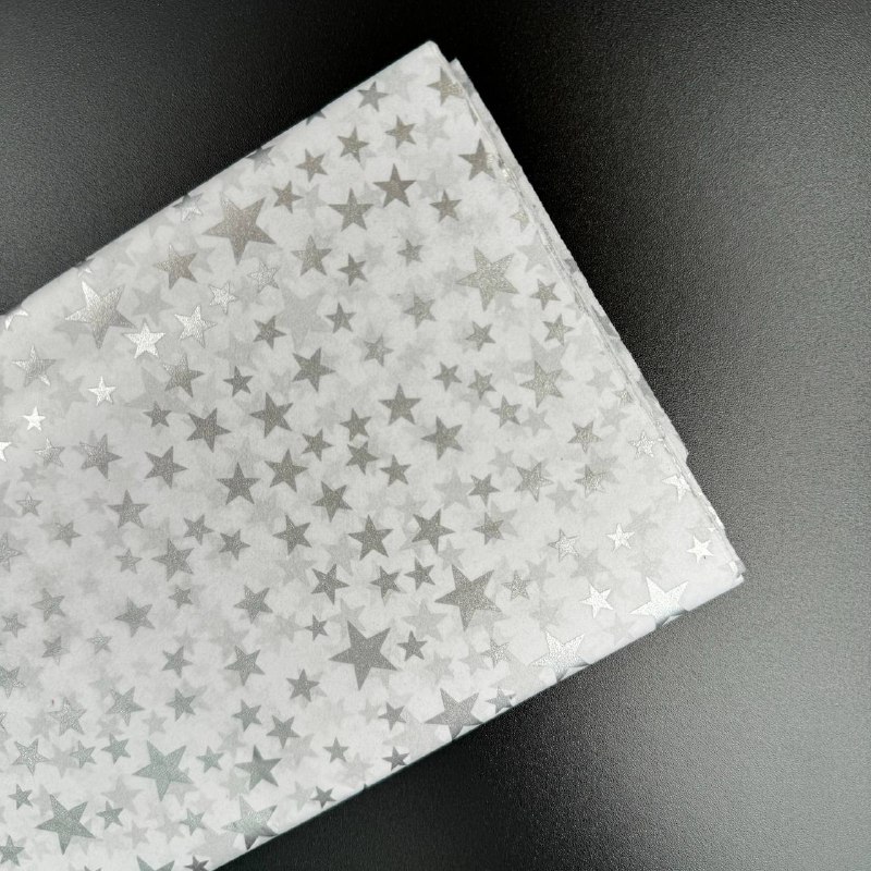 Бумага тишью 50*66 см 10 шт белая серебрянные звезды 2
