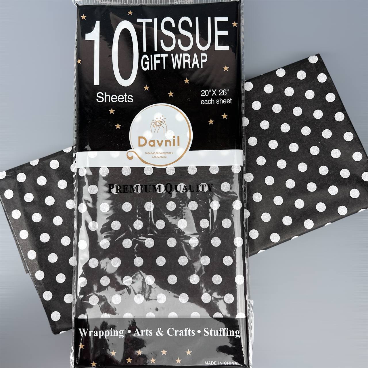 Бумага тишью 50*66 см 10 шт в мелкий горох черная 1