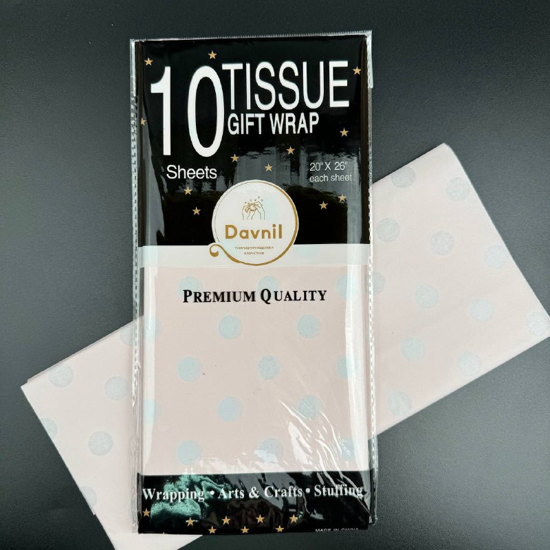 Бумага тишью 50*66 см 10 шт с белым горохом розовая