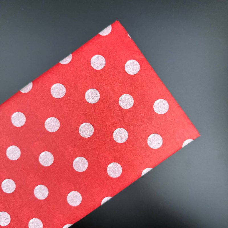 Бумага тишью 50*66 см 10 шт с белым горохом красная