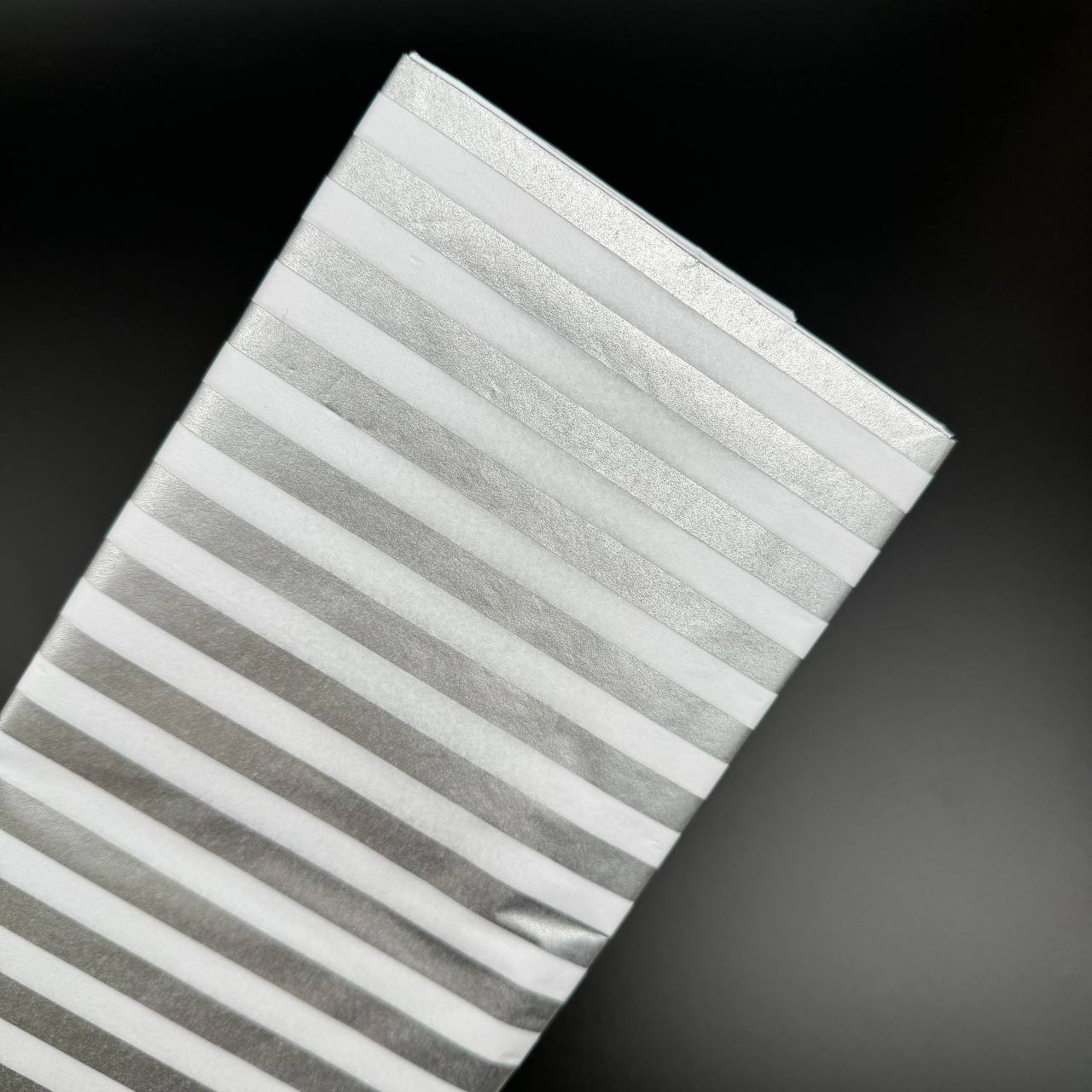 Бумага тишью 50*66 см 10 шт в полоску серебро 6