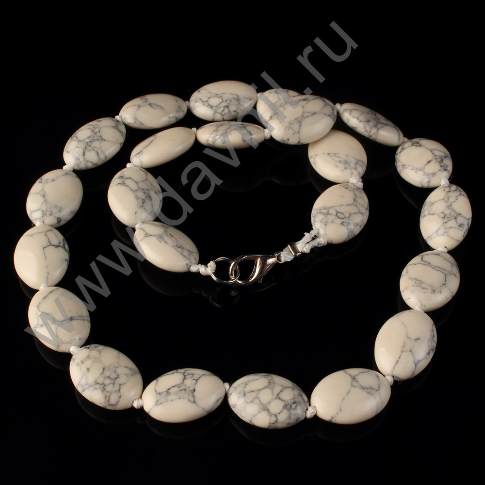 Бусы 18*12 мм овал плоский имитация камня кахолонг 45 см бежевые