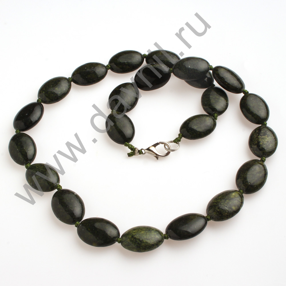 Бусы овал плоский имитация камня змеевик 12*18 мм 45 см зелёные