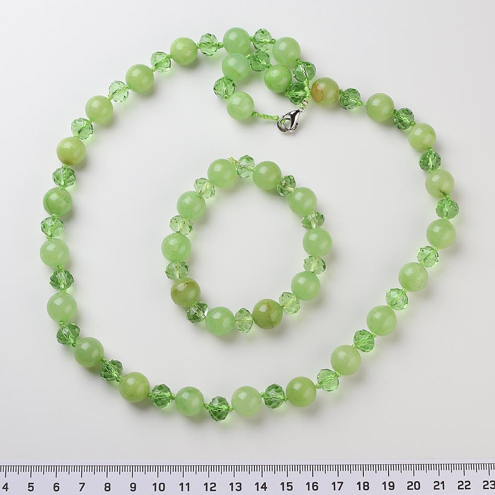 Набор бусы + браслет и серьги оникс с хрусталём 60 см