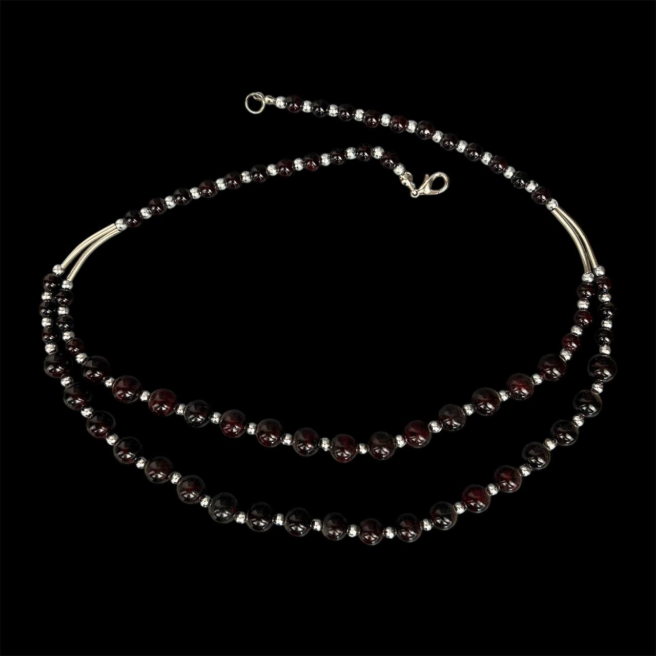 Бусы-колье 10/6 мм 2 ряда имитация камня гранат тёмно-бордовые