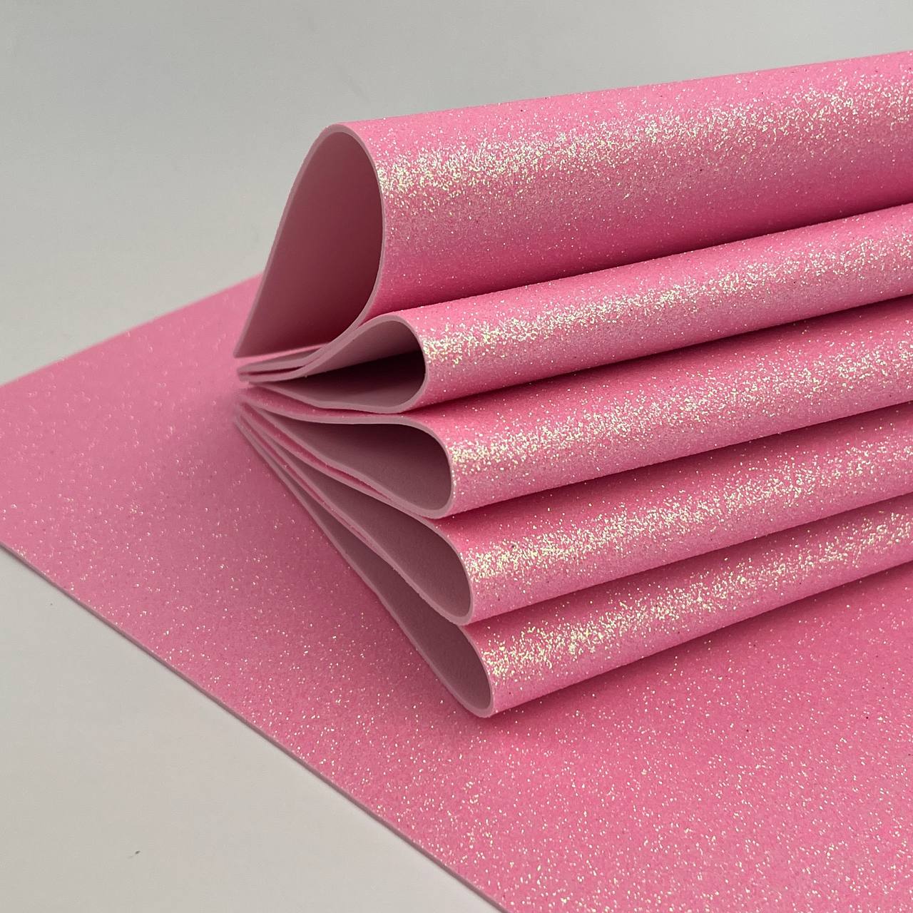 Фоамиран глиттерный 20*30 см 2 мм 10 шт розовый 006