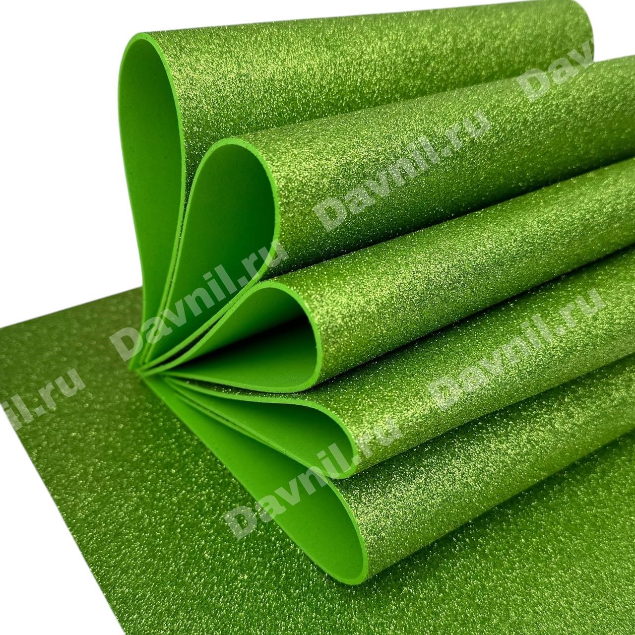 Фоамиран глиттерный 20*30 см 2 мм 10 шт салатовый 012
