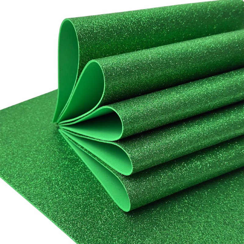 Фоамиран глиттерный 20*30 см 2 мм 10 шт зелёный 011