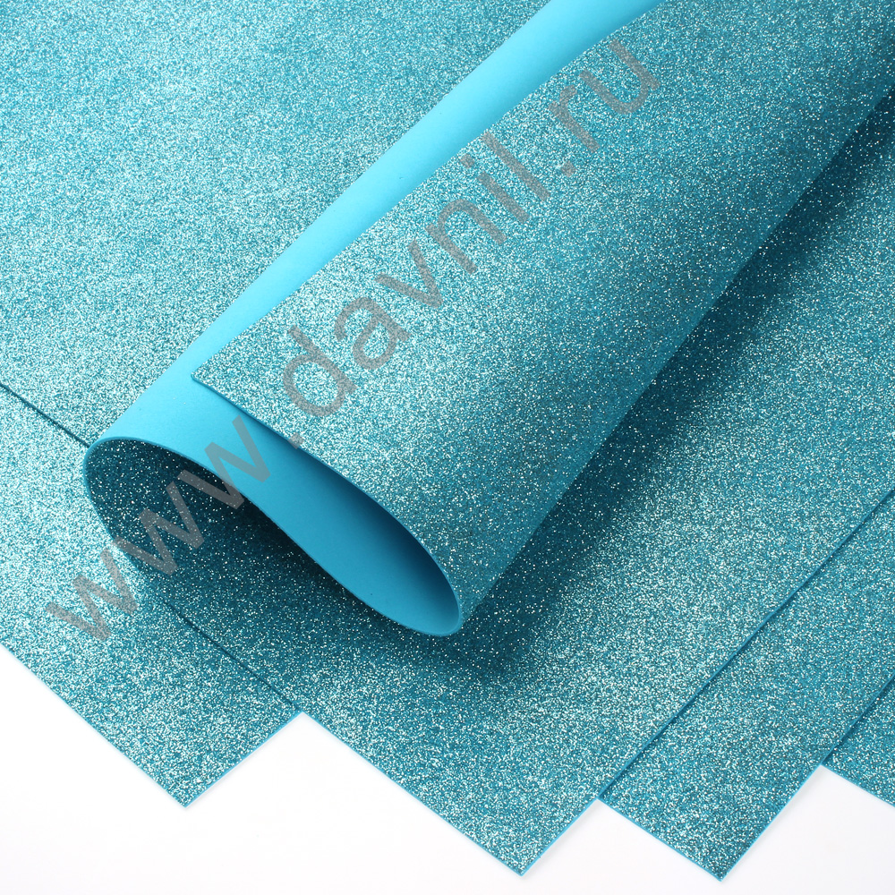 Фоамиран глиттерный 30*40 см 2 мм 10 шт. синий