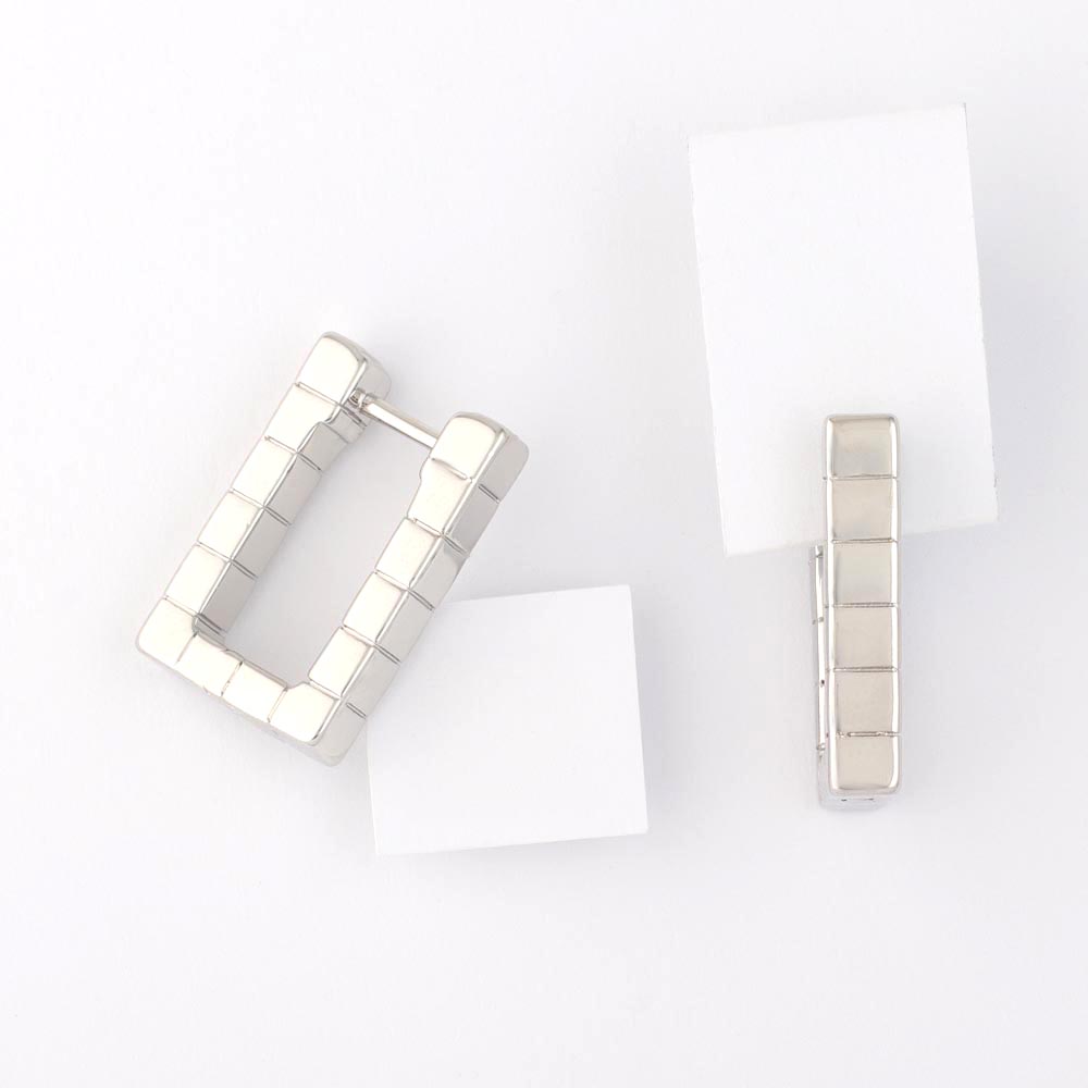 Серьги "прямоугольник " родиевое покрытие 1 пара Korea
