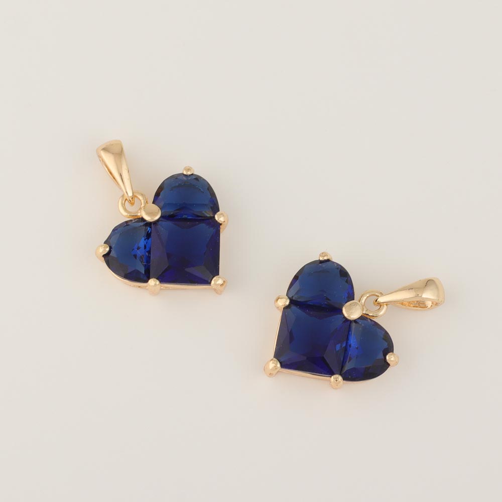 Подвеска родиевое покрытие золото сердечко синее14 мм 10 шт Korea