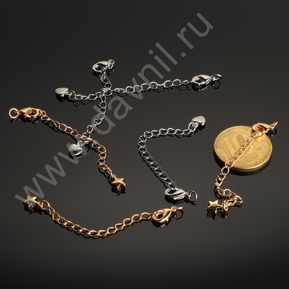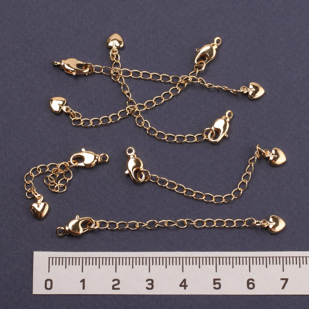 Карабин 10 мм 100 шт родиевое покрытие с цепочкой и сердечком золото Korea