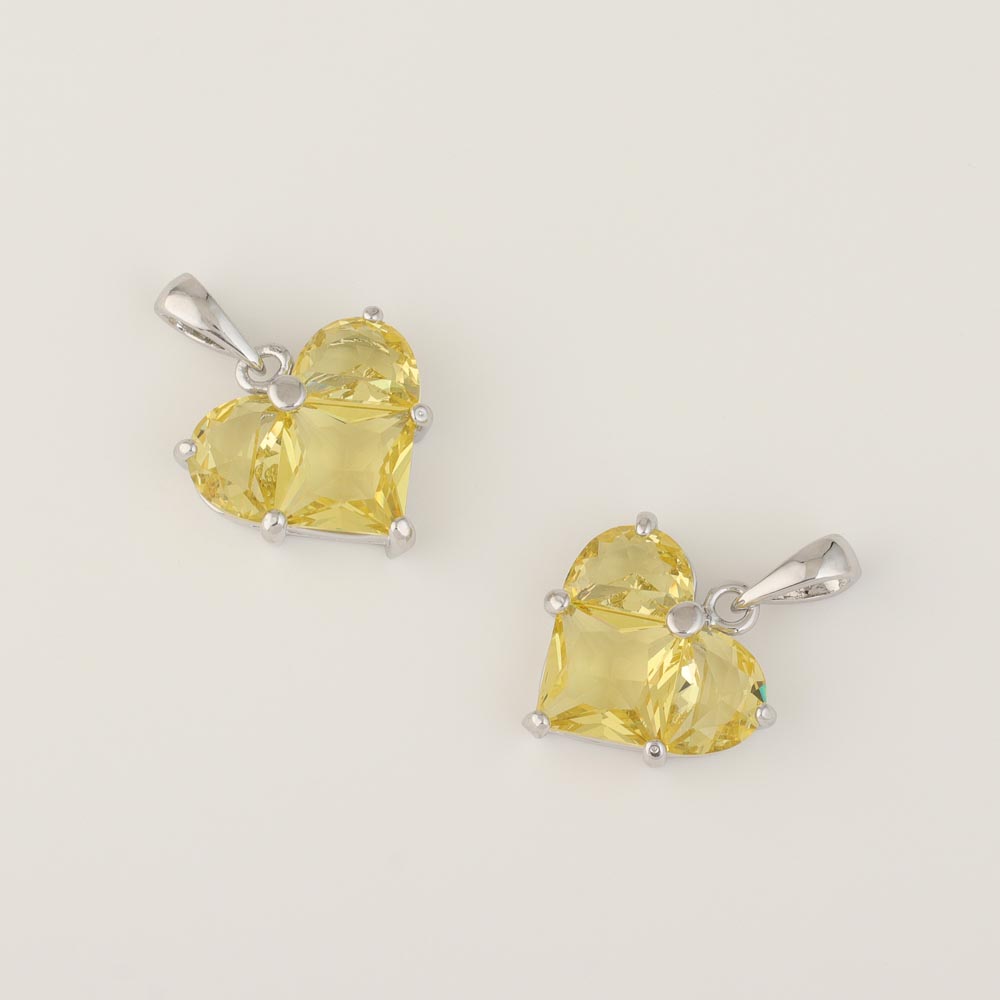 Подвеска родиевое покрытие серебро сердечко жёлтое14 мм 10 шт Korea