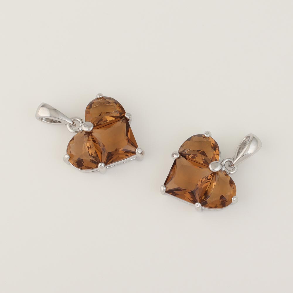 Подвеска родиевое покрытие серебро сердечко светло коричневое14 мм 10 шт Korea