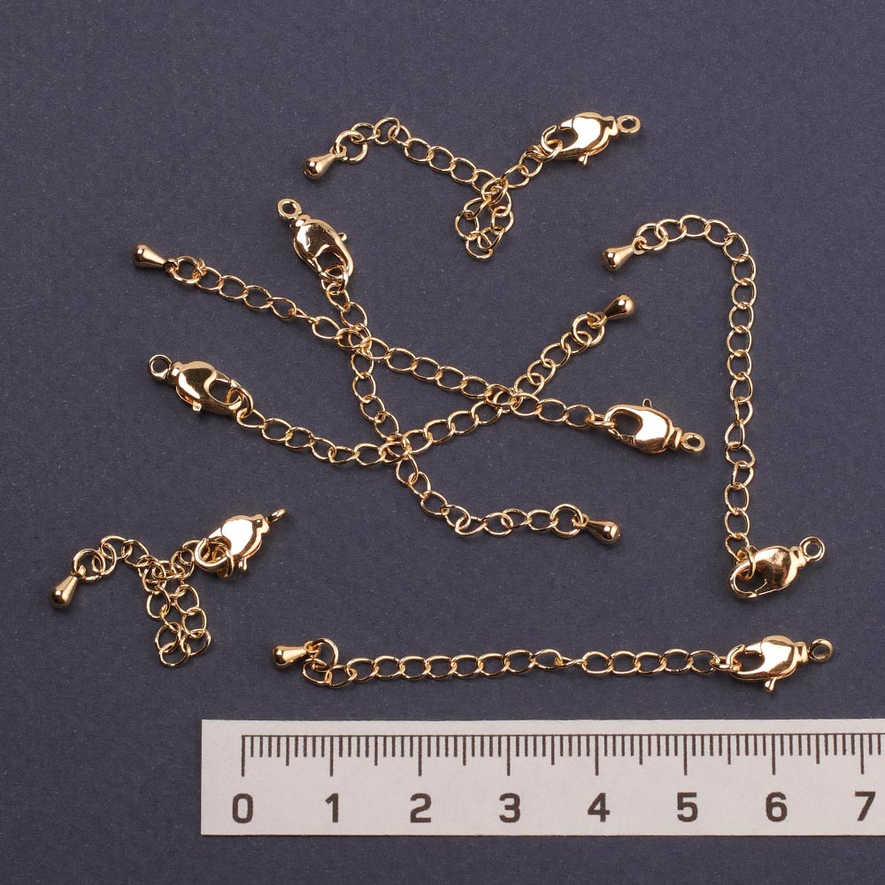 Карабин 11,2 мм 30 шт родиевое покрытие с цепочкой и каплей золото Korea
