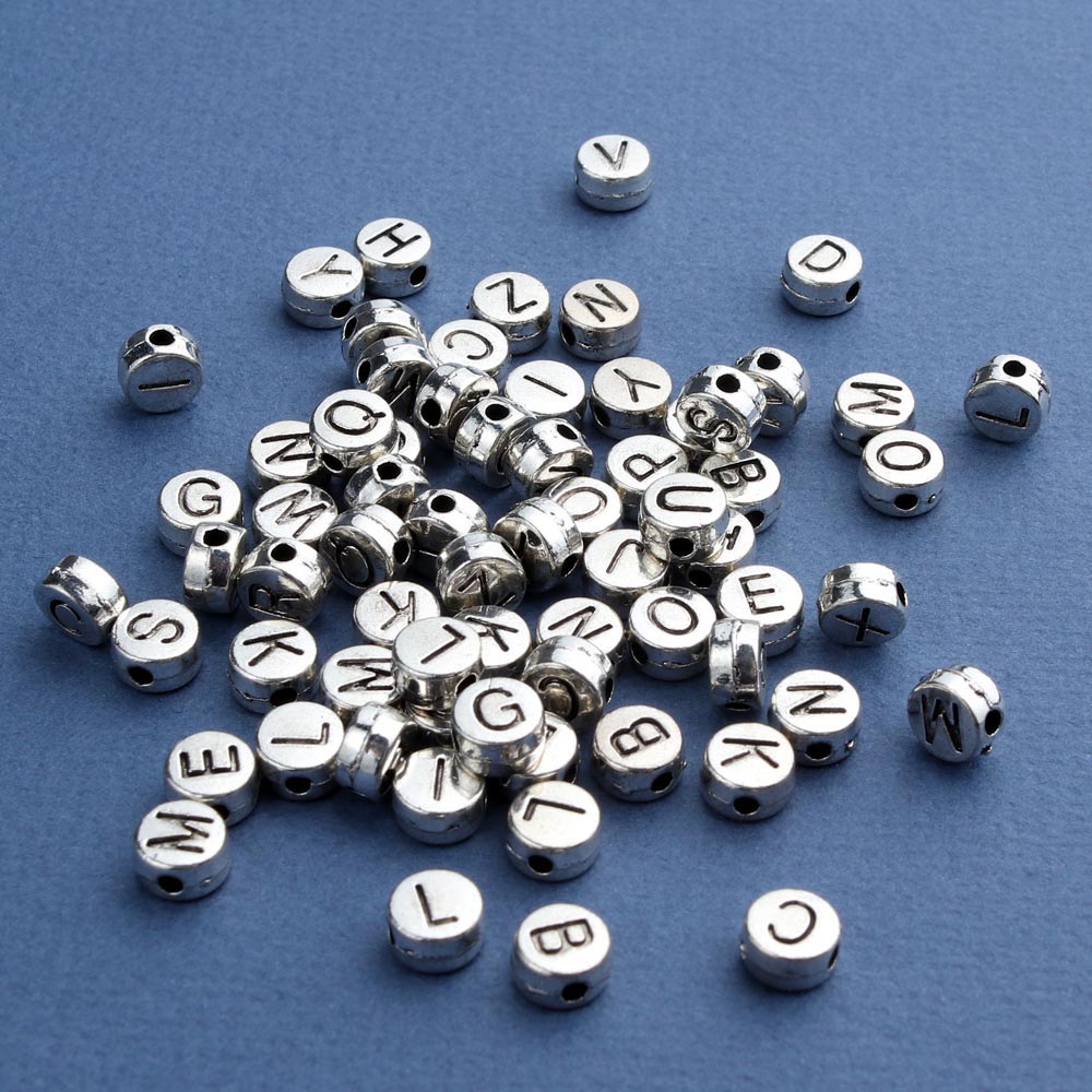 Бусины 6 мм 50 гр буквы круглые серебряные