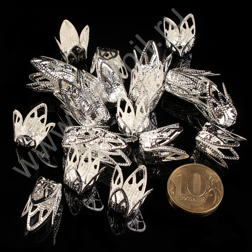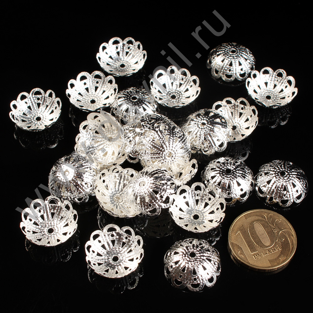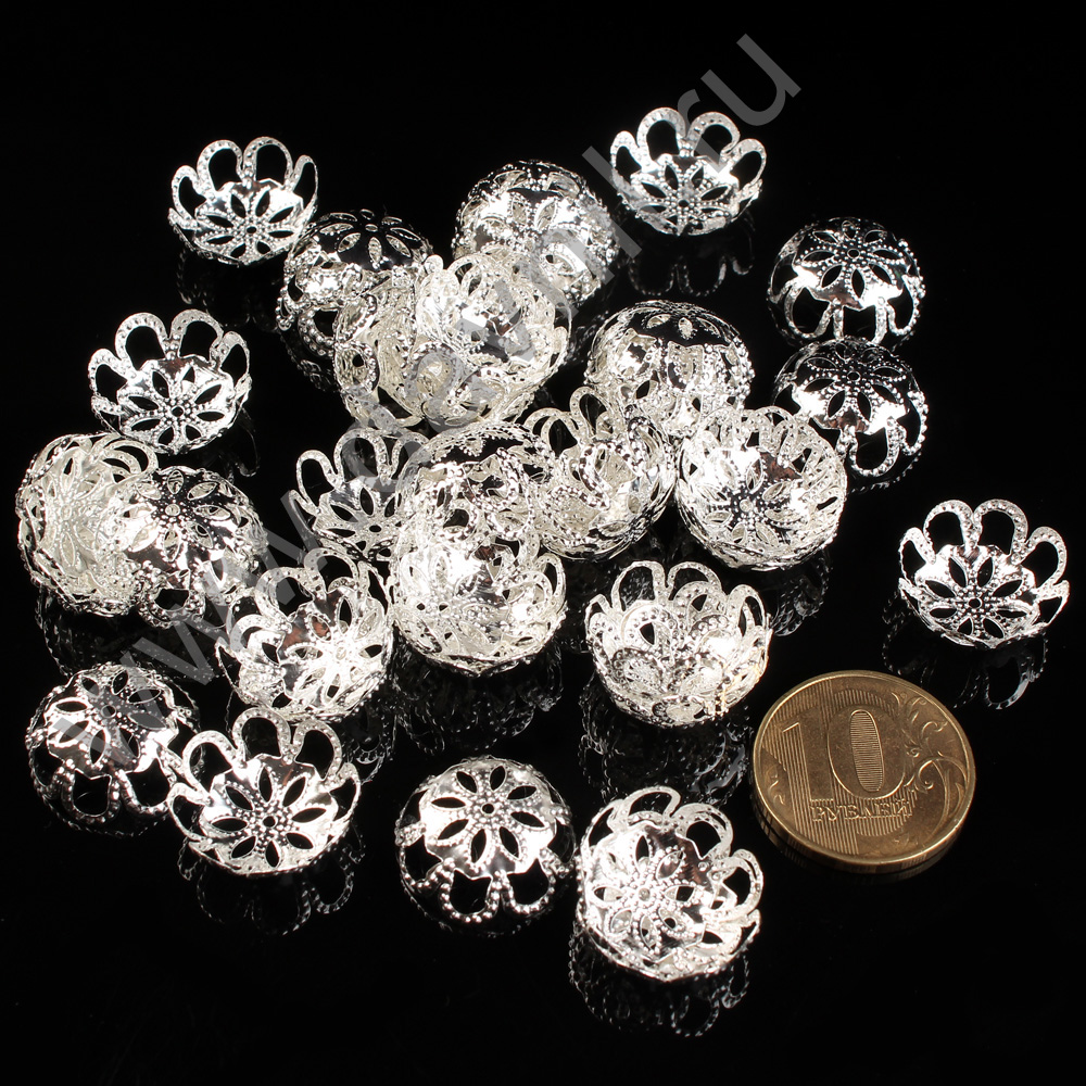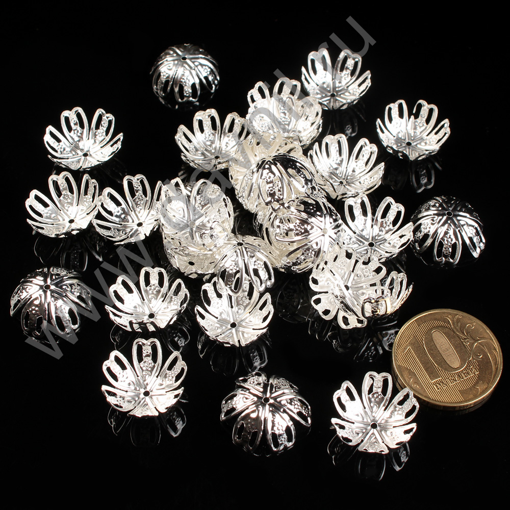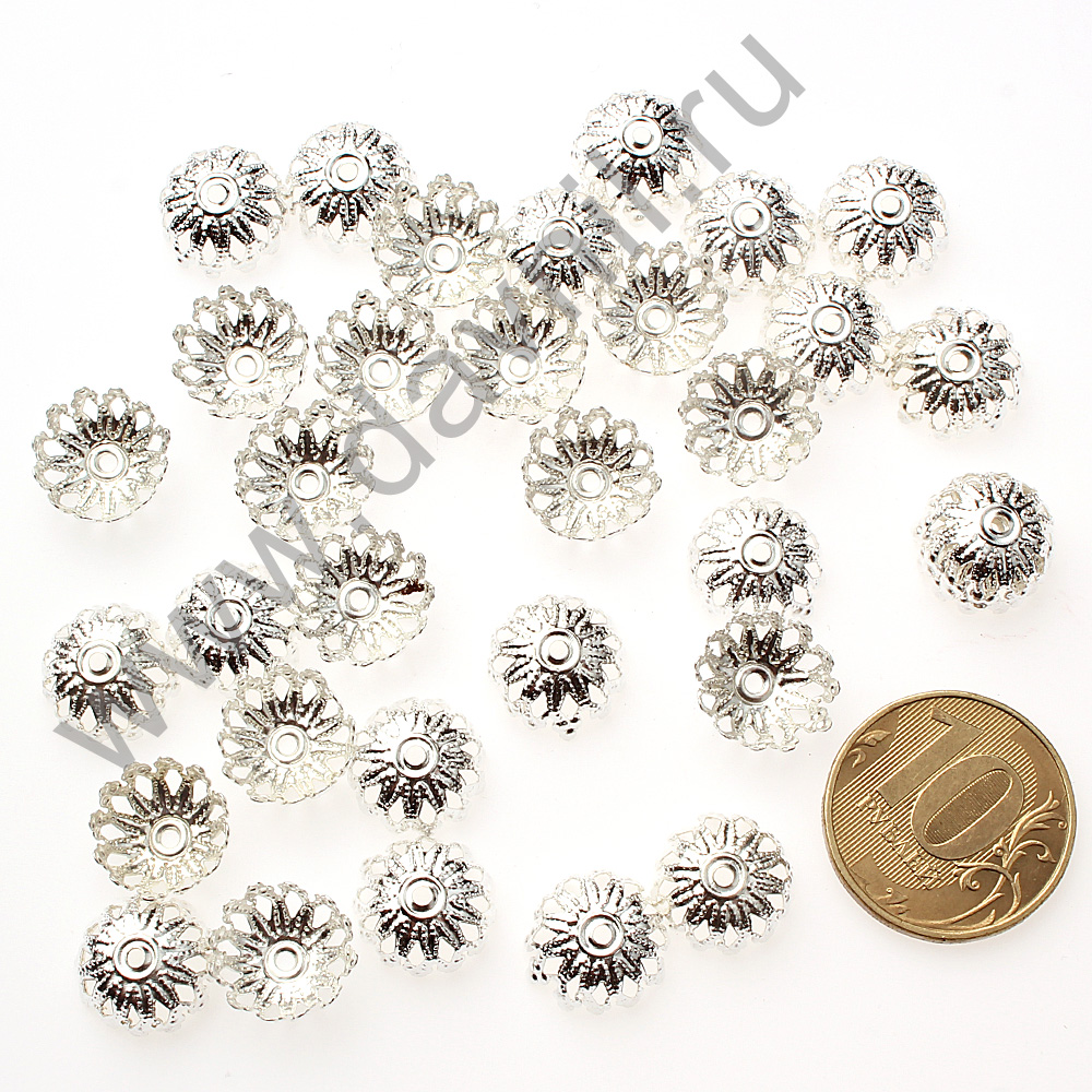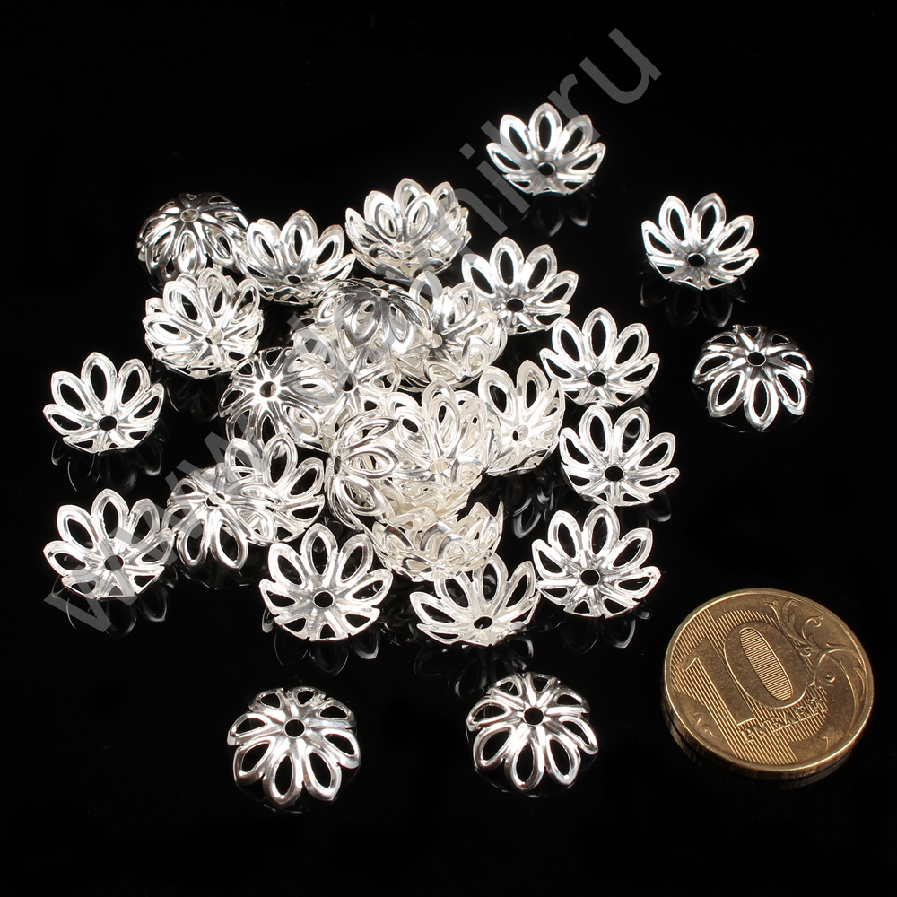 Шапочки для бусин родиевое покрытие 6 мм 100 шт серебро