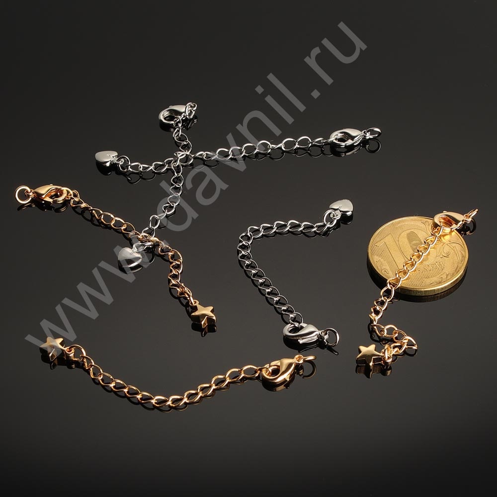 Карабин 12 мм 50 шт родиевое покрытие с цепочкой и сердечком золото Korea