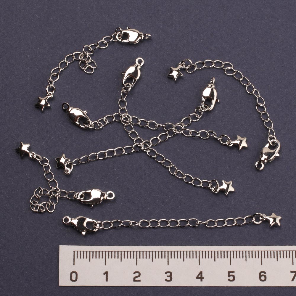 Карабин 11,2 мм 30 шт родиевое покрытие с цепочкой и звёздочкой серебро Korea