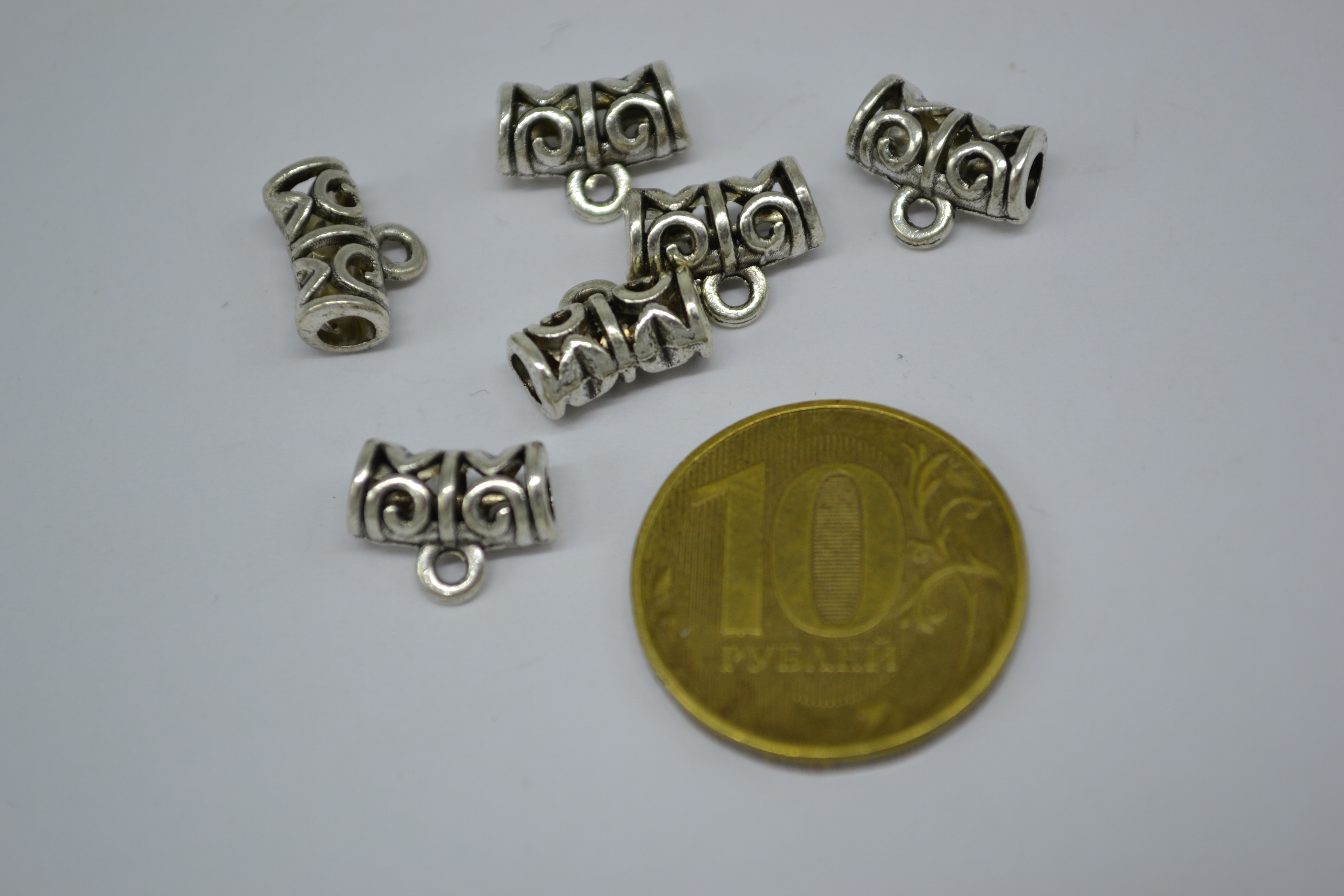 Подвеска металлическая для украшений серебро 1000гр бочонок с узорами 03-14