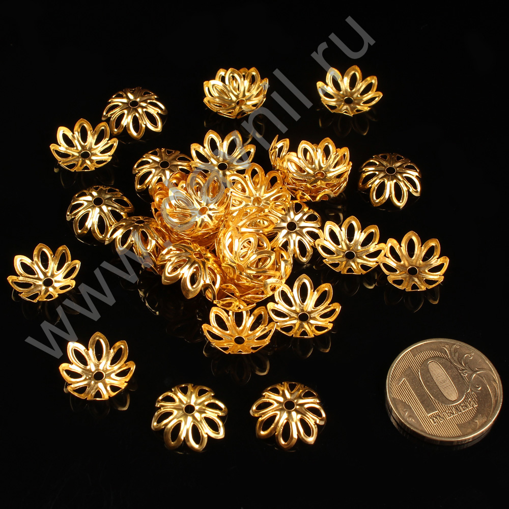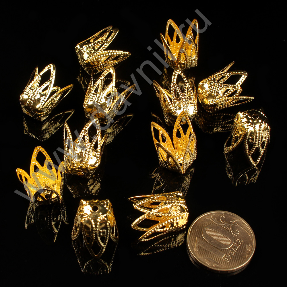 Шапочки для бусин ажурные 13 мм 1,360 кг 10 000 шт золото