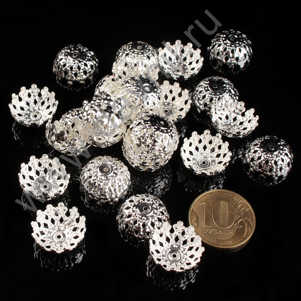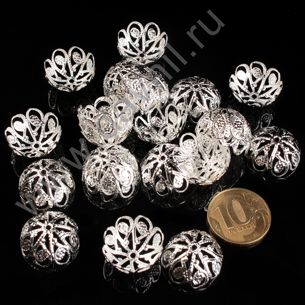 Шапочки для бусин ажурные 25 мм 1,063 кг 2 040 шт серебро
