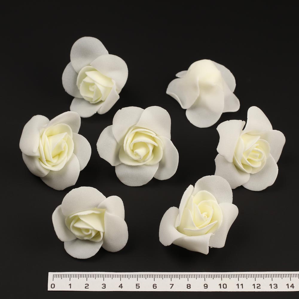 Роза из фоамирана 5 см 200 шт белый с айвори