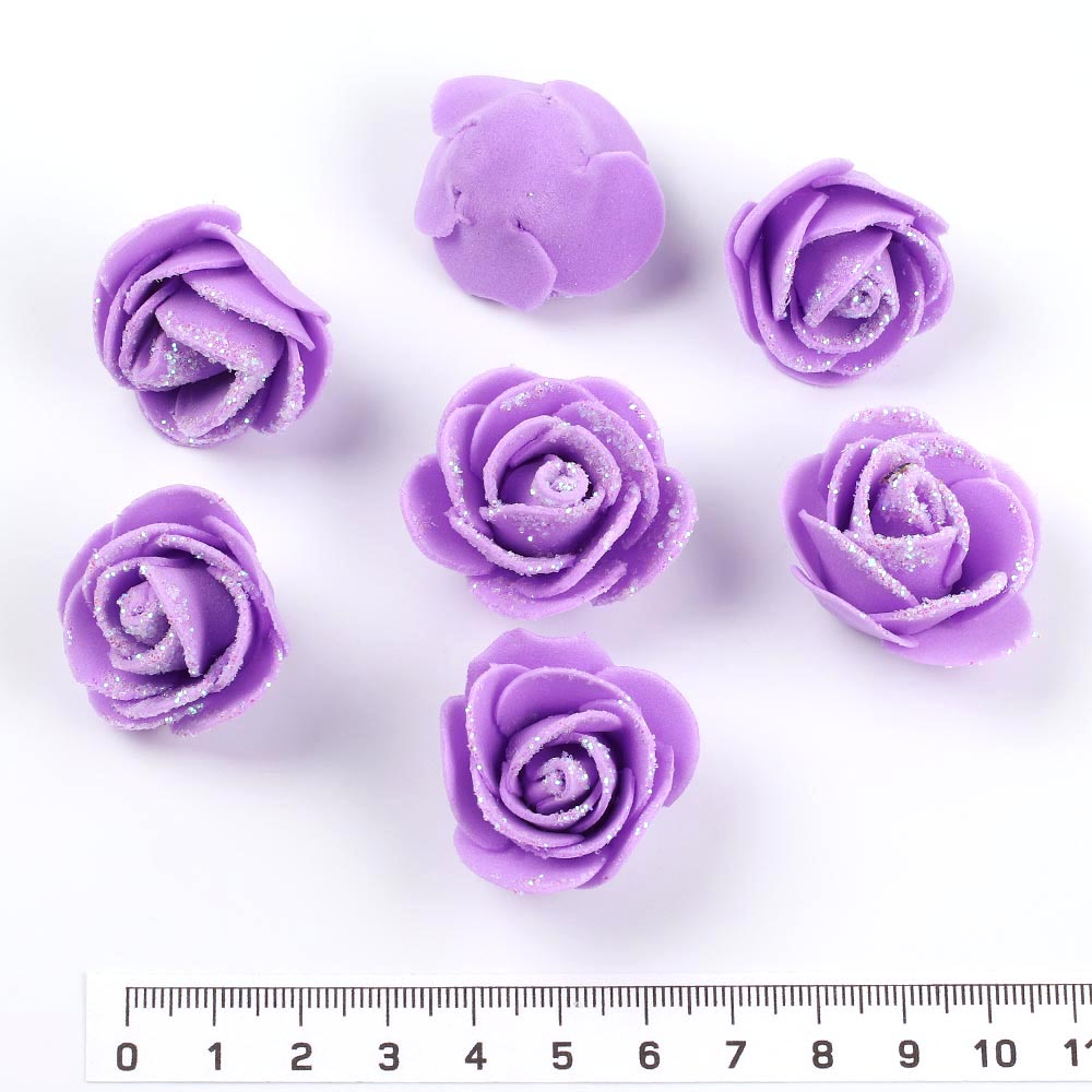 Роза из фоамирана с блёстками 2 см 500 шт сиреневая