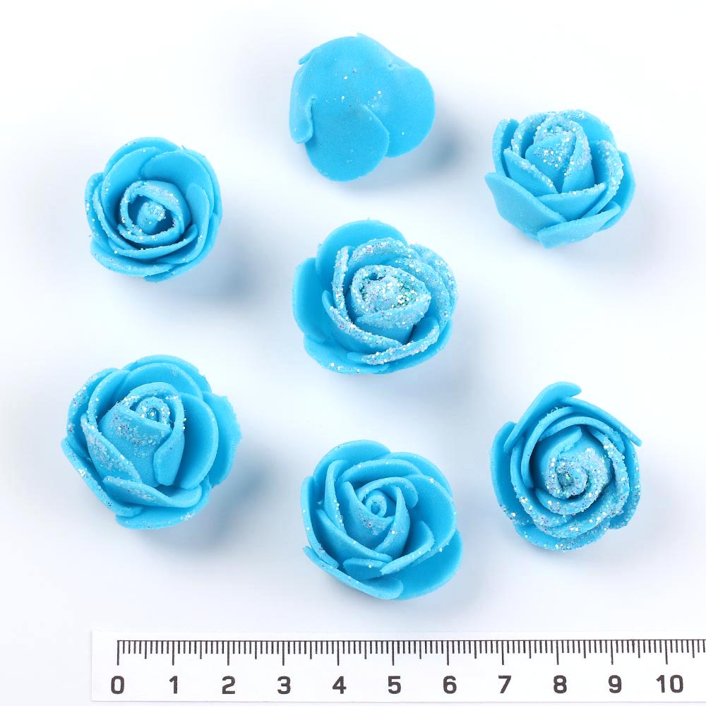 Роза из фоамирана с блёстками 2 см 500 шт синяя