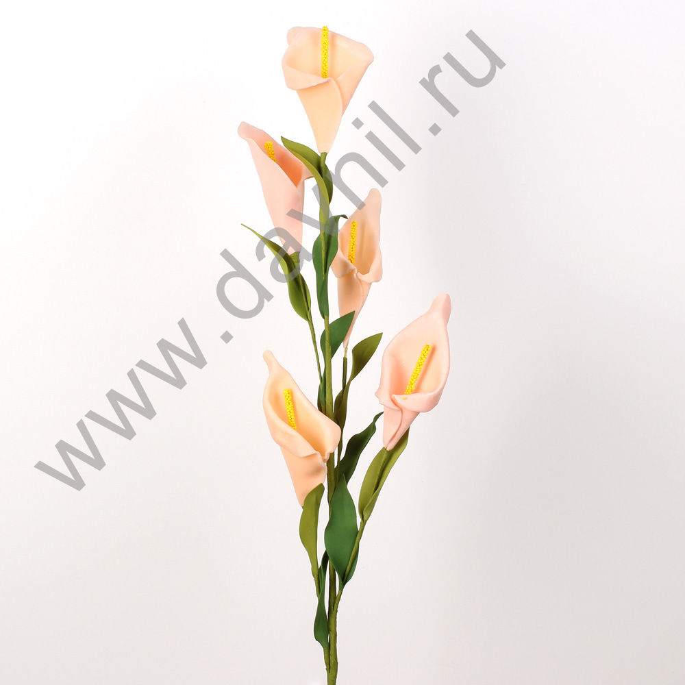 Цветок каллы из фоамирана 5 головок 65 см 1 шт. персиковый