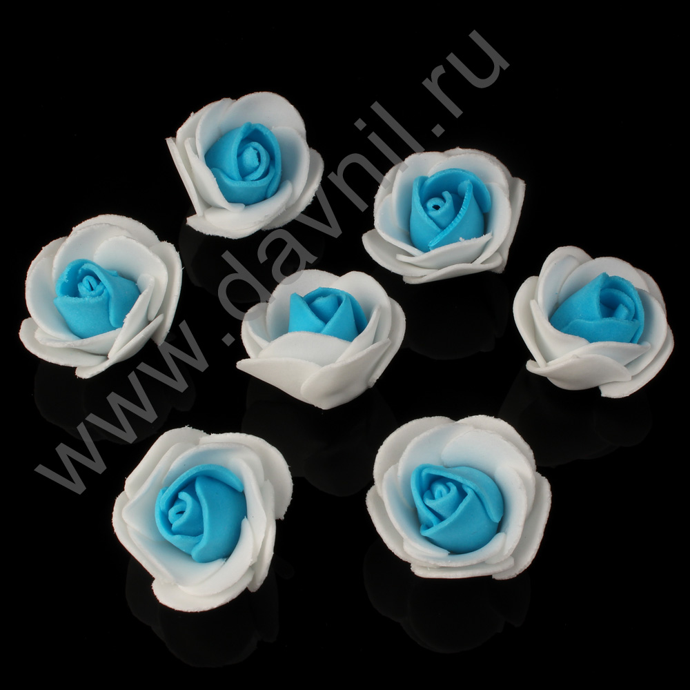 Роза из фоамирана 2 см 500 шт белый/синий