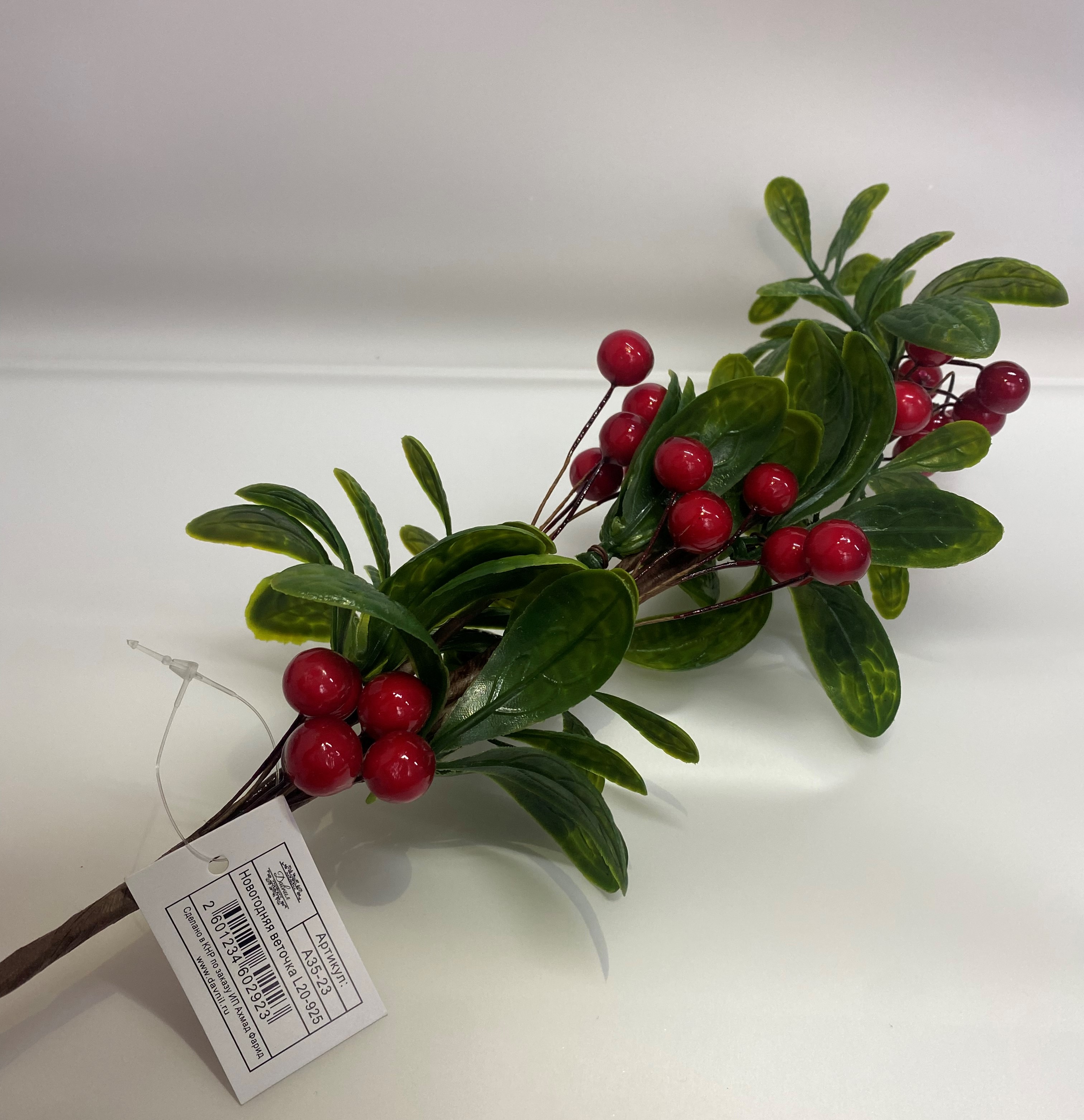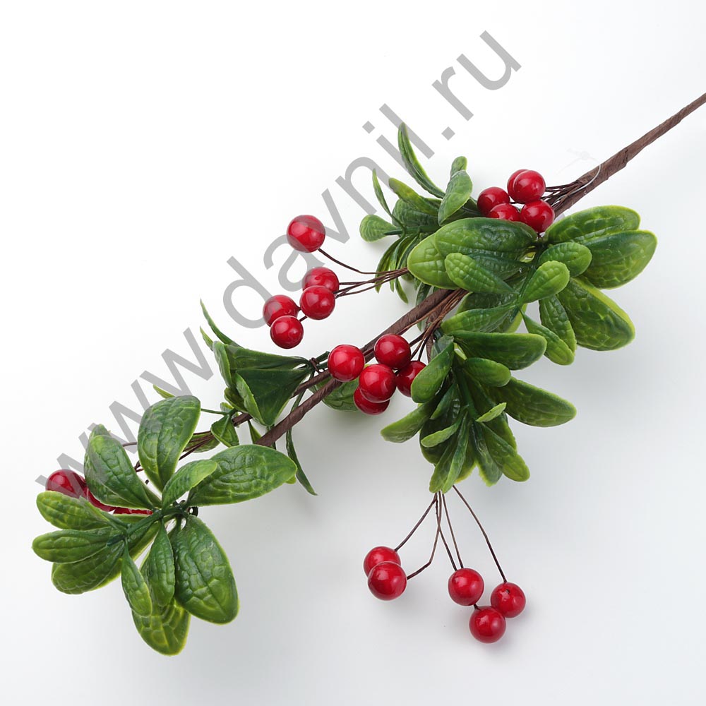 Декоративная веточка с красными ягодами 55 см L20-925