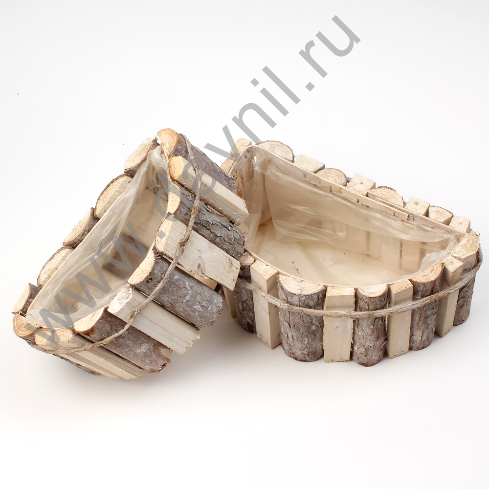 В наборе 2 деревянных кашпо разного размера и радиуса: